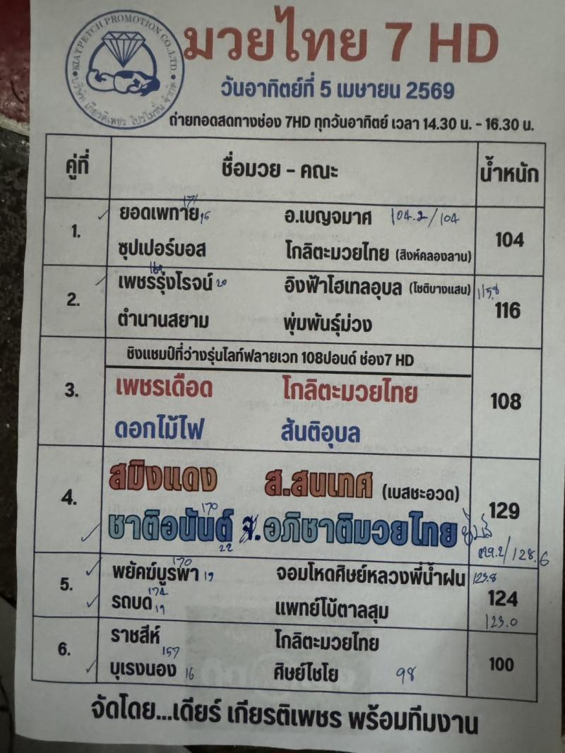 มวยวันนี้ 05/04/2569 ผลมวยสด ผลมวยล่าสุด โปรแกรมมวยวันนี้ มวยไทยวันนี้ วิจารณ์มวย วิเคราะห์มวย วิเคราะห์มวยวันนี้ วิจารณ์ มวย 7 สี อาทิตย์ นี้ มวยไทย7สีอาทิตย์นี้ วิเคราะห์วิจารณ์มวย มวยสยาม ข่าวมวย โปรแกรมมวยไทย ข่าวกีฬา ผลมวย ผลมวยสด ผลการแข่งขัน วิเคราะห์มวย วิจารณ์มวย ทีเด็ดมวย ผลมวยล่าสุด สยามกีฬาทีวี มวยไทย มวยวันนี้ มวยตู้