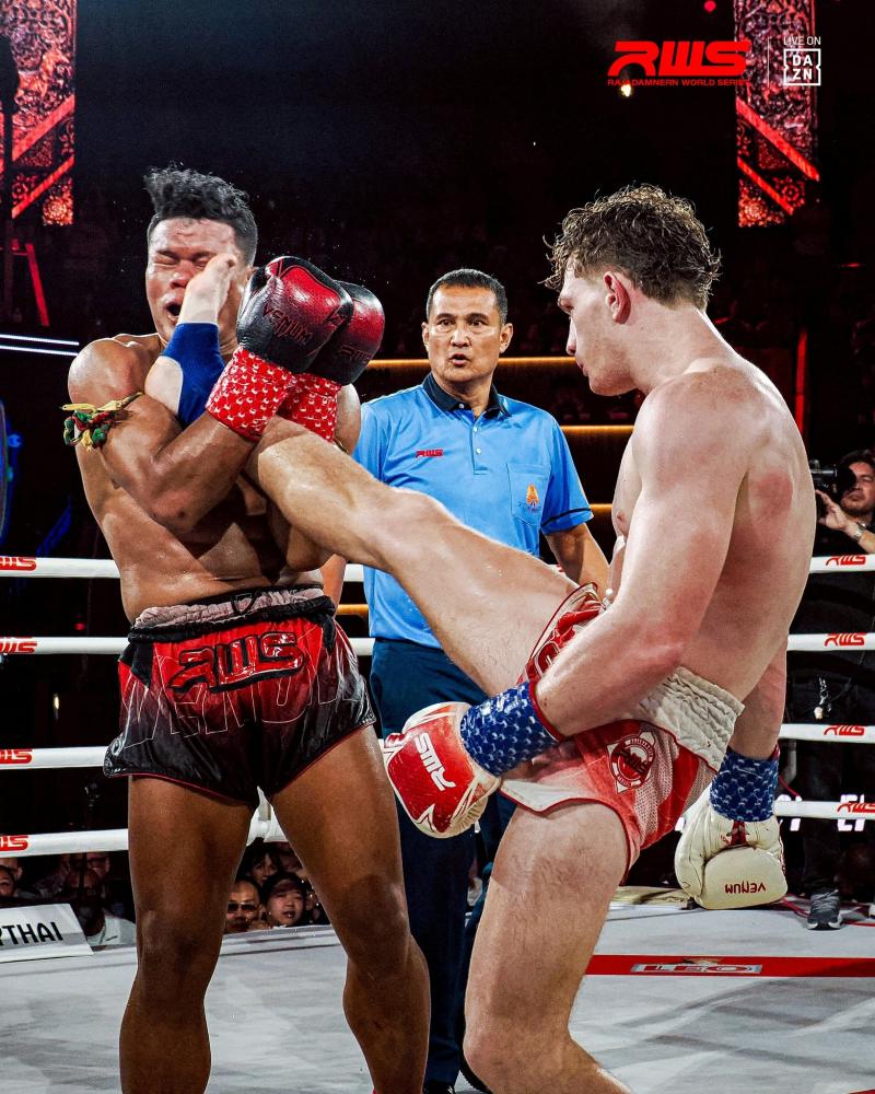 การต่อสู้ มวยหมัดหนักเตะซ้ายต่อยหนักเข่าคมศอกขวาแข็งแรง -