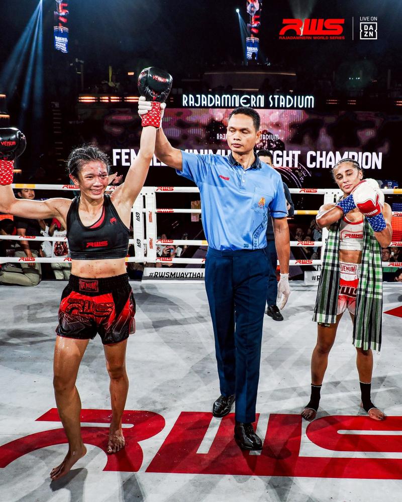 | มงกุฏเพชร เขาหลักมวยไทย | ชนะคะแนน | เดวิน่า มาร์ติน สตรองฮาร์ท |