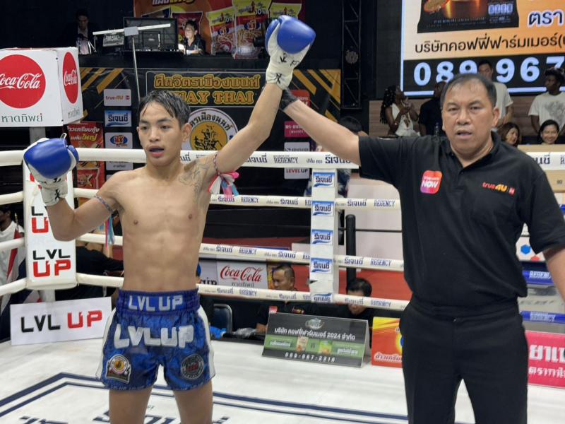มวยไทย รุ่นเฟเธอร์เวต (145-155 ป.) 155.0 ปอนด์ ชนะน็อกยก 2